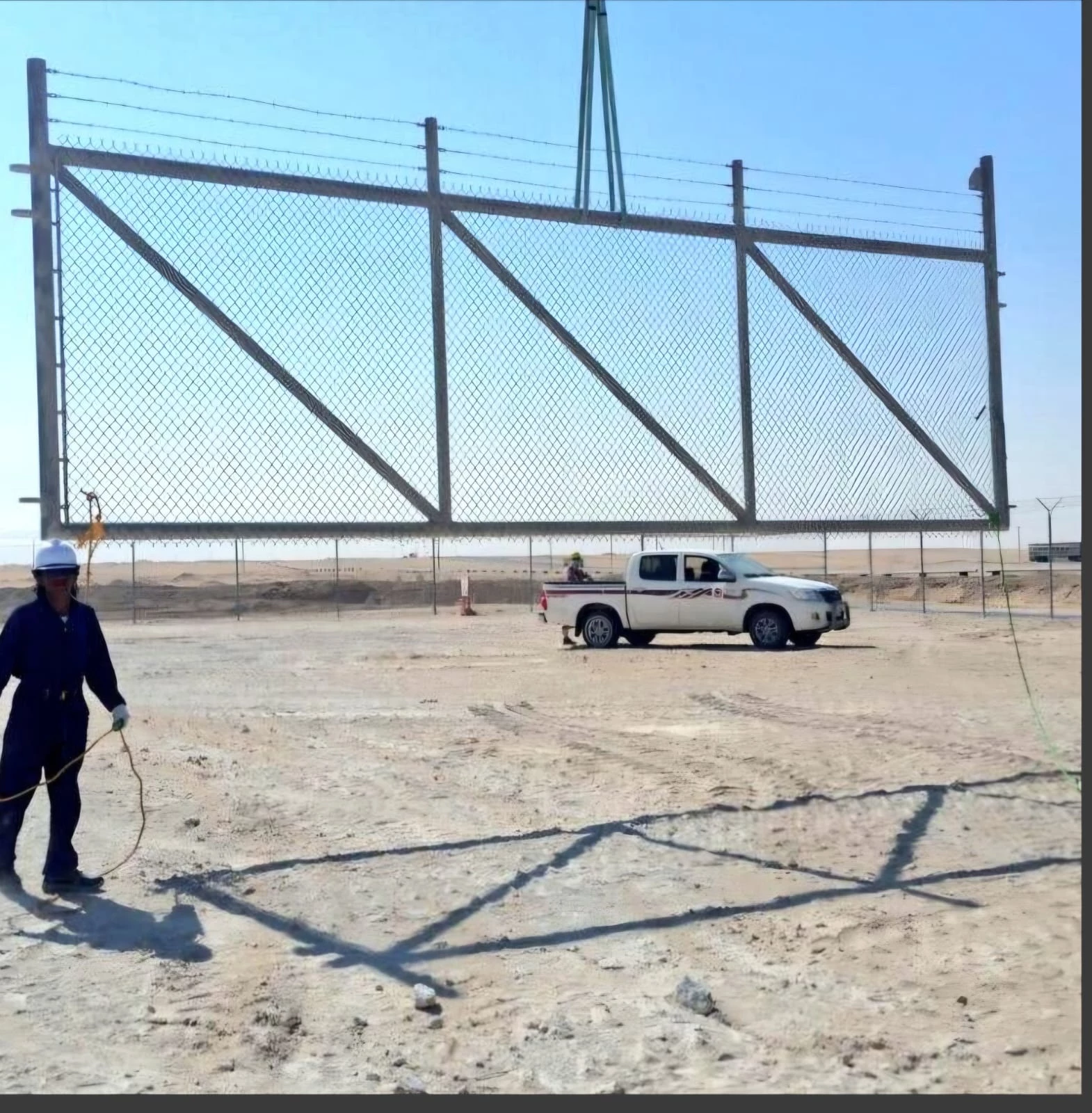 يتم اعتماد المتر الطولي للتوريد والتركيب من خلال عمل قواعد خرسانية عاديه على مسافات متقاربه وصب القواعد صبة خرسانية مقاومة وعمل عمدان من المواسير المجلفن ويتم تركيب وأسيرات الربط و شبك حماية سفلي بالارتفاع المطلوب وعمل الاسلاك الشائكة حسب الطلب وتركيب البوابات حسب المخططات او الاقتراحات المراد تركيبها على اكمل وجه طبقا لأصول الصنعة وتعليمات المختصين والاستشاريين والمهندس المشرف